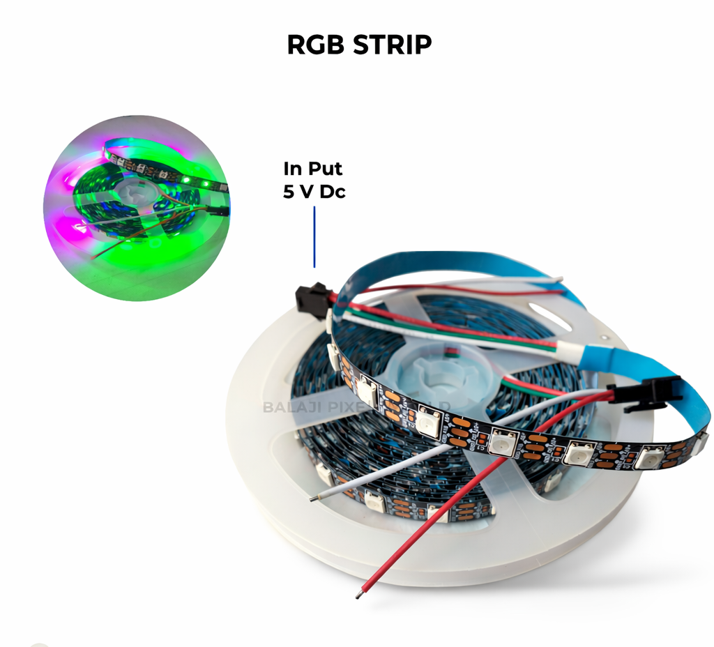 • Integrated IC (WS2812B Chip): The control circuit and RGB chip are integrated into a single 5050 SMD package, resulting in a cleaner, more compact design and simpler wiring.